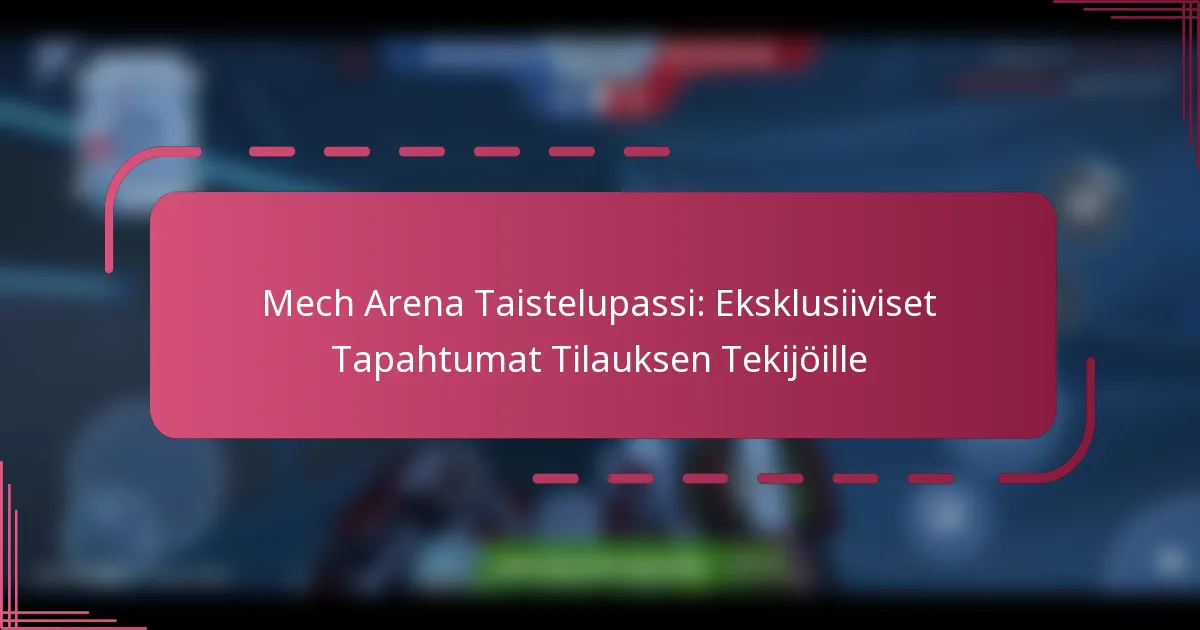 Mech Arena Taistelupassi: Eksklusiiviset Tapahtumat Tilauksen Tekijöille